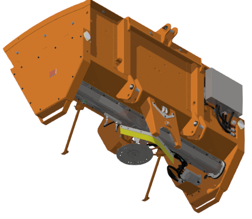Sypač komunikací je vybaven opěrnou nohou pro zajištění stability při jeho odstavení.